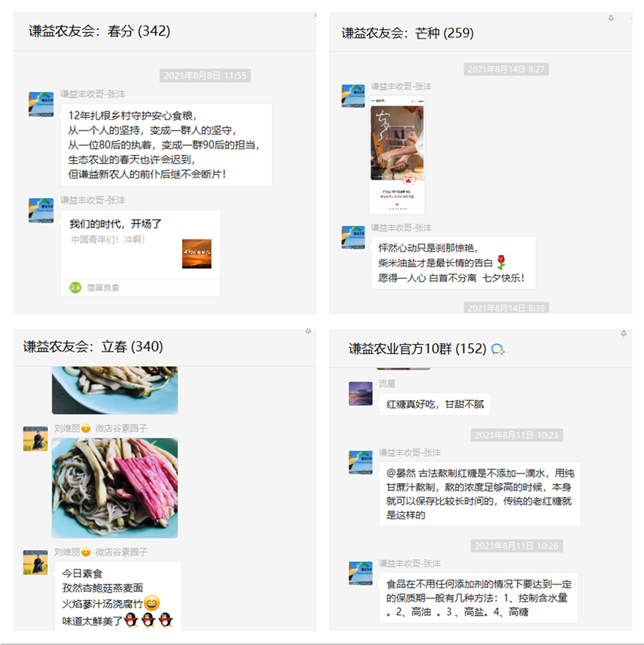 「我们更愿意把社群、朋友圈当做一个跟用户交朋友的地方」李明攀说。谦益的社群常年会跟粉丝聊一些家长里短和农产品背后的趣事,甚至还会邀请用户来基地参观,拉近和用户的距离。