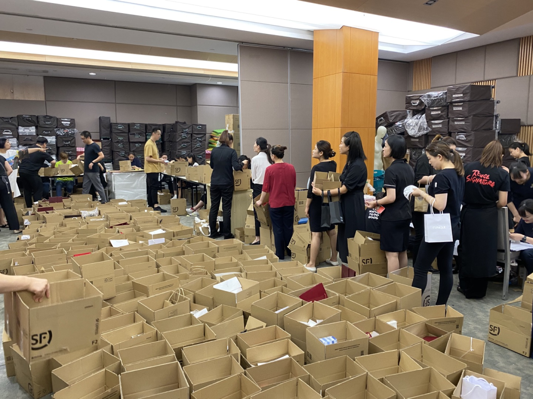 在一次次的摸索下,泰富终于迎来了自己的首个爆款活动,一晚上 100万 GMV。由于没有经验,隔天待发货品堆满了会议室、行政通道,除了快递员和柜姐,销售总监、楼层经理都加入了包货的队伍中。